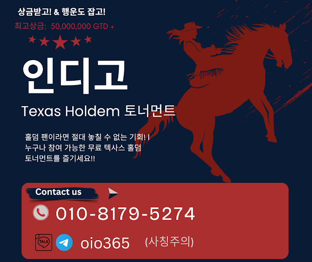 매주 화요일 토요일 ‘인디고 홀덤’에서 온라인 실전 홀덤 토너먼트 대회 사전 신청을 한 뒤, 지정된 인디고게임 (와일드홀덤)에서 토너먼트 참여할수 있습니다.